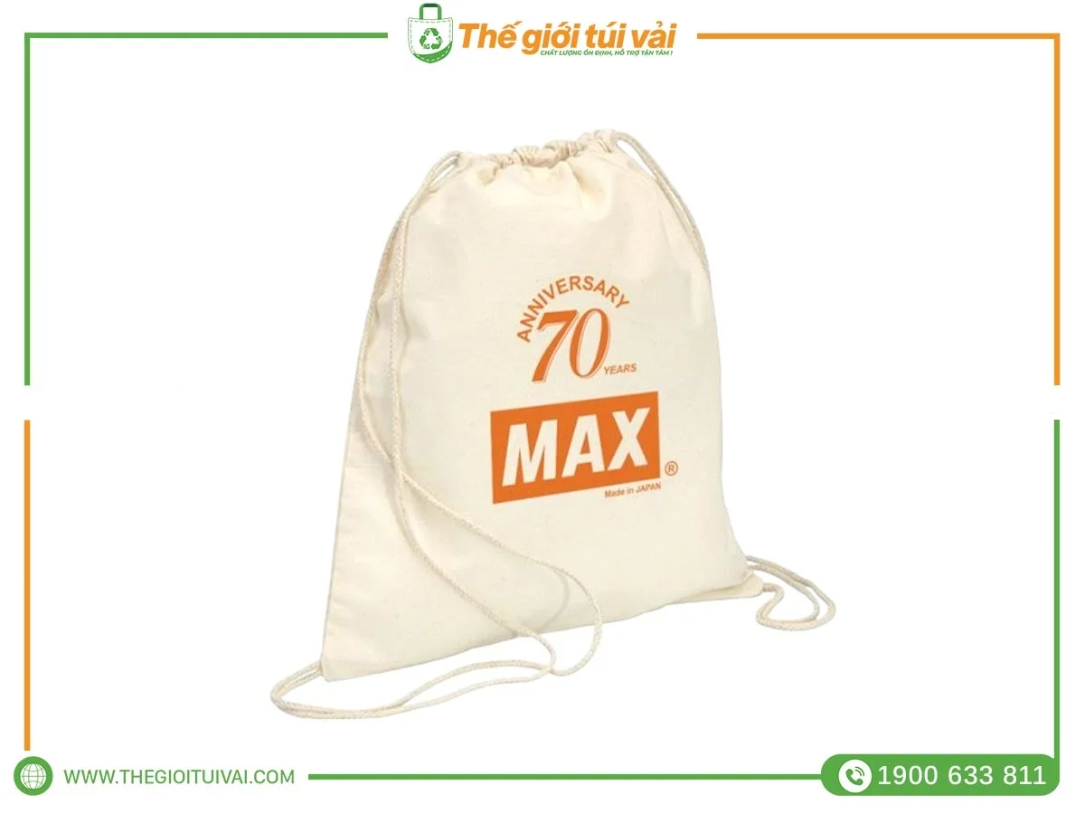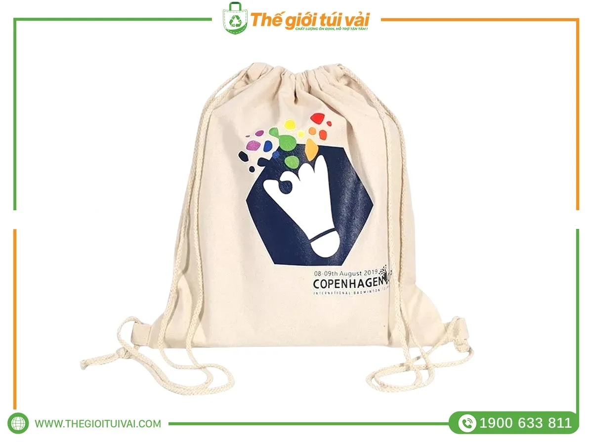 In thông tin thương hiệu rõ nét lên bề mặt balo dây rút vải canvas