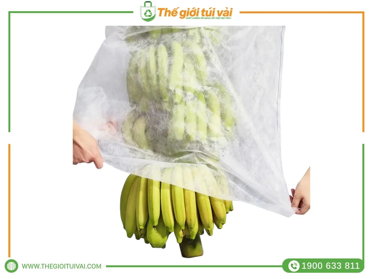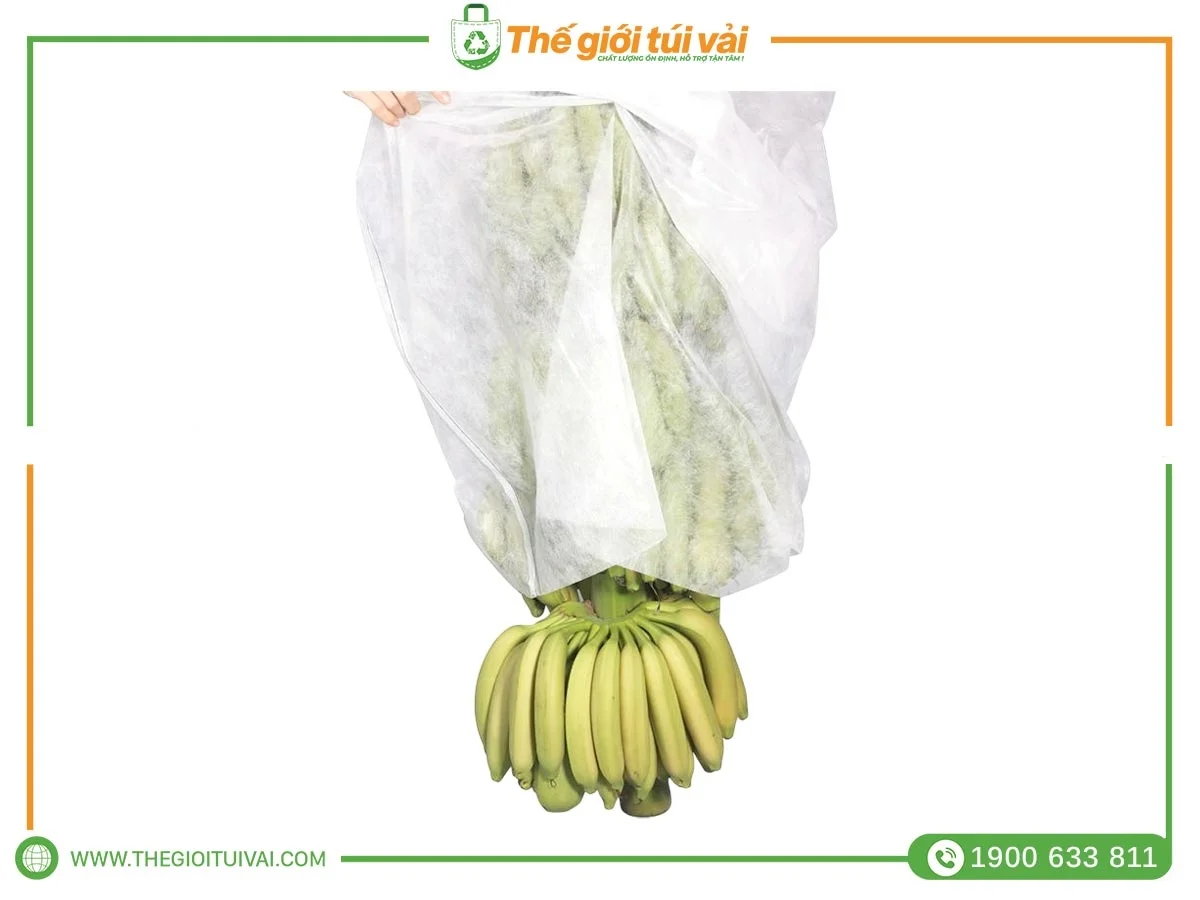 Vải không dệt là chất liệu phổ biến với đặc tính nhẹ, thoáng khí và dễ tái chế. Loại vải này giúp bảo vệ chuối khỏi sâu bệnh mà vẫn đảm bảo không khí lưu thông, giúp quả phát triển tự nhiên.