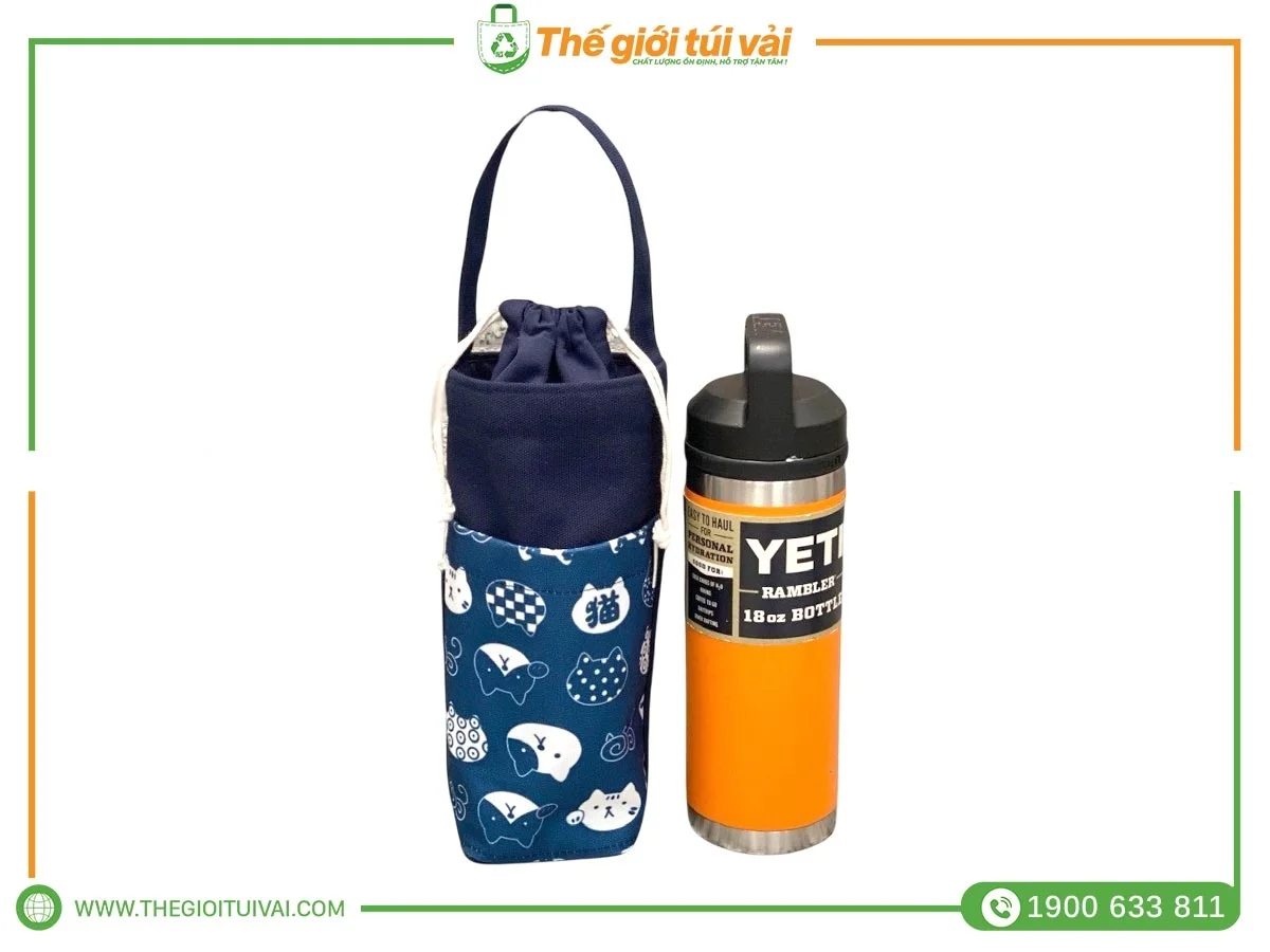 Túi vải đựng bình giữ nhiệt trang trí các họa tiết bắt mắt