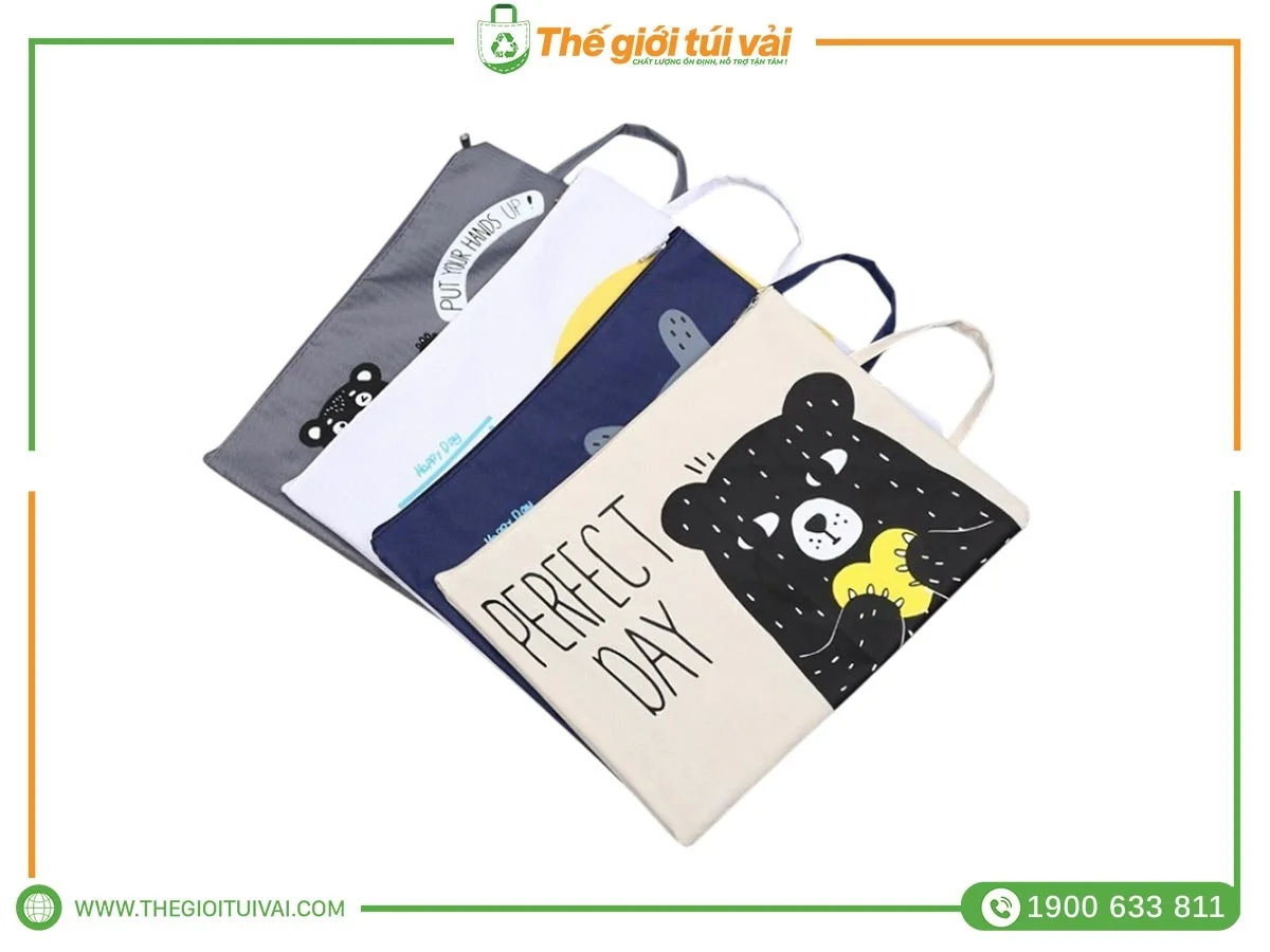 Túi vải đựng hồ sơ thiết kế dây kéo và quai xách tiện lợi khi mang theo